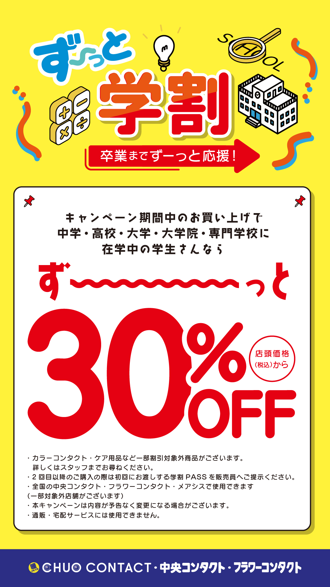 中央コンタクトをご利用いただく学生様を対象とした学割キャンペーンを実施いたしております!
