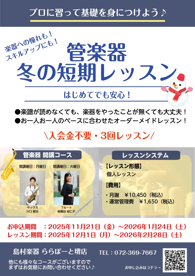 - 【サックス・フルート】冬の短期レッスン開講中!