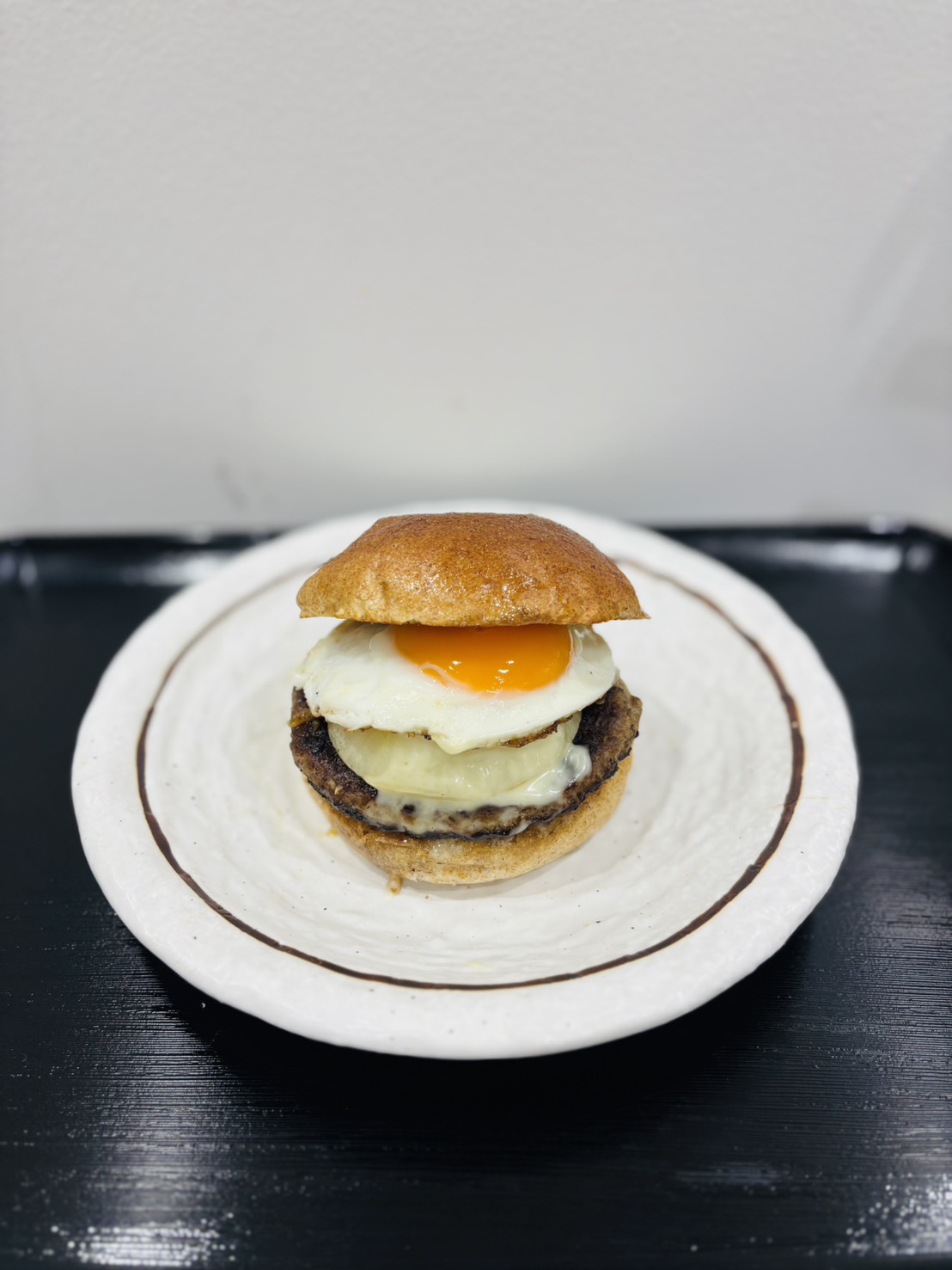 ジューシーなお肉に、とろりとした卵、甘みのある玉ねぎを合わせた、王道かつ間違いのない組み合わせ。濃厚な甘辛ソースと、爽やかなレモンマヨネーズが全体を引き締め、最後まで飽きずに楽しめる一品です。