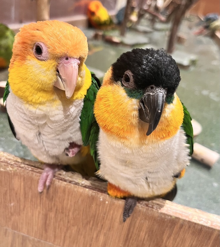 ズグロシロハラインコ「パタ」とシロハラインコ「コロ」