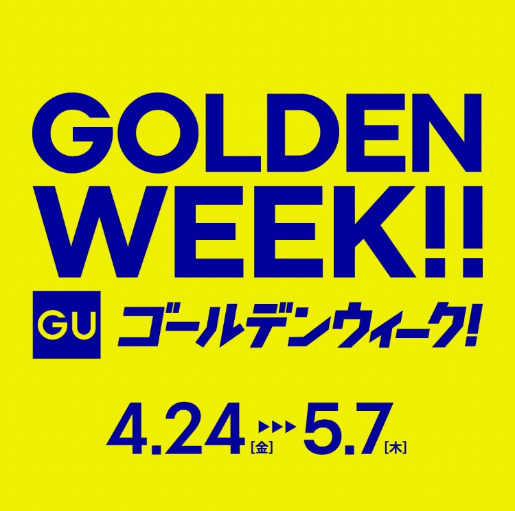 こんにちは、GUよりGOLDEN WEEK第一弾!4/24(金)から4/30(木)のアプリ会員様特別価格のお得な商品をご紹介させていただきます!