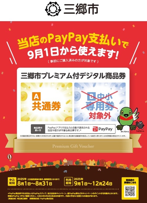 三郷市プレミアム付デジタル商品券がご利用いただけます。
