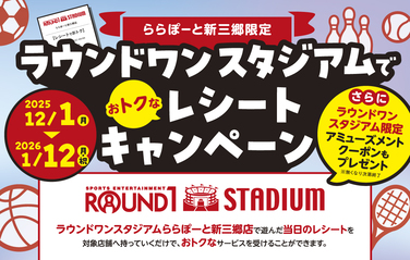 ラウンドワンスタジアムでおトクなレシートキャンペーン