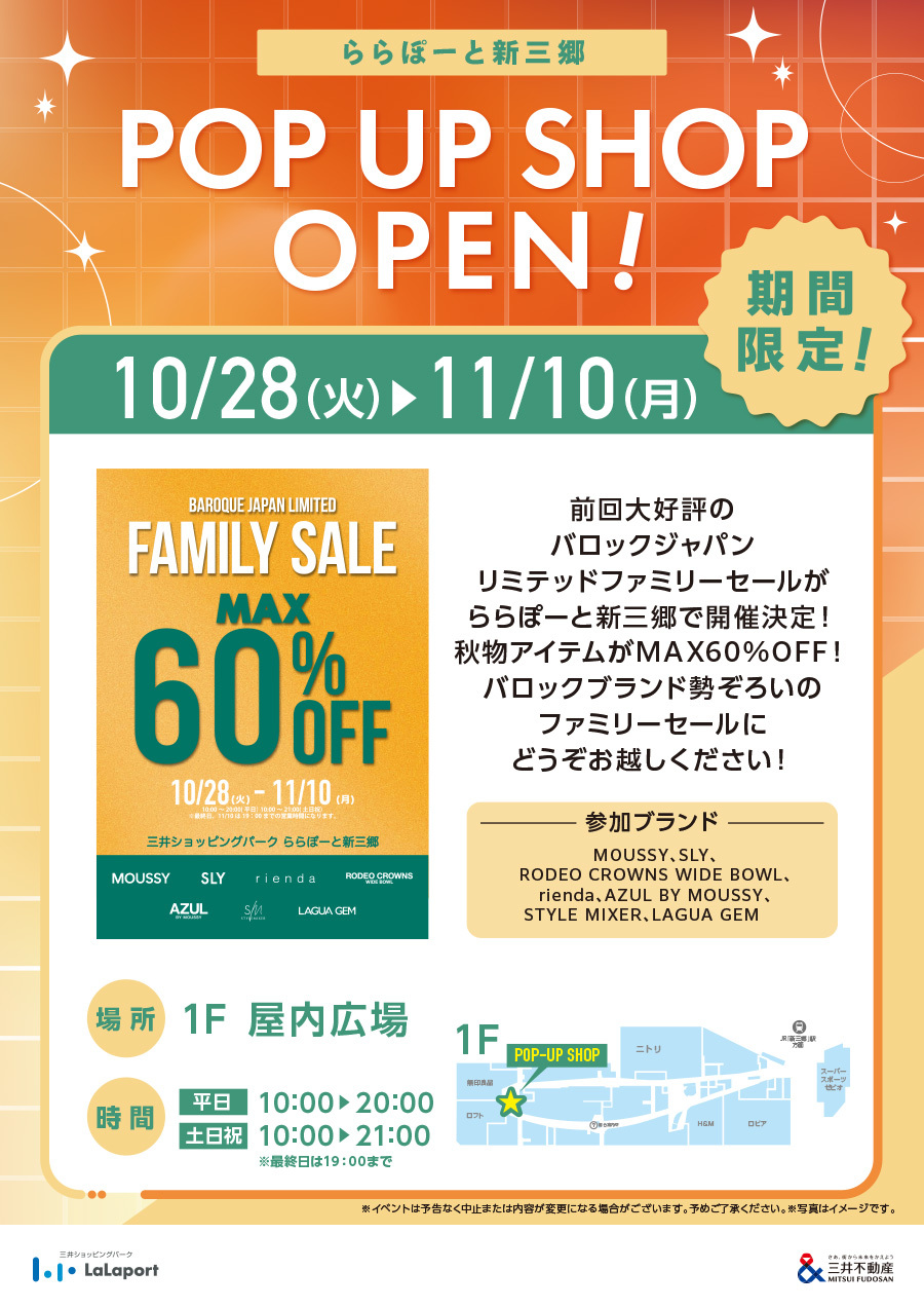 前回大好評のバロックジャパンリミテッドファミリーセールがららぽーと新三郷で開催決定!