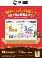 - 三郷市プレミアム付デジタル商品券がご利用いただけます。