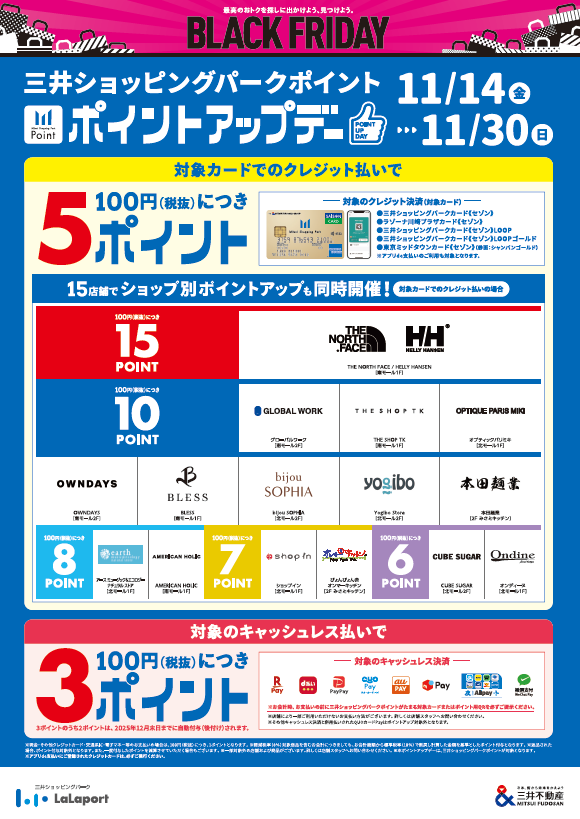 11/14(金)~11/30(日)の期間、三井ショッピングパークポイントポイントアップデーを開催!