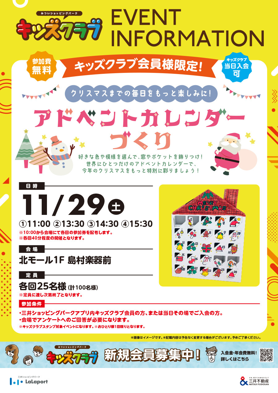 ・三井ショッピングパークアプリ内キッズクラブ会員の方、または当日その場でご入会の方。