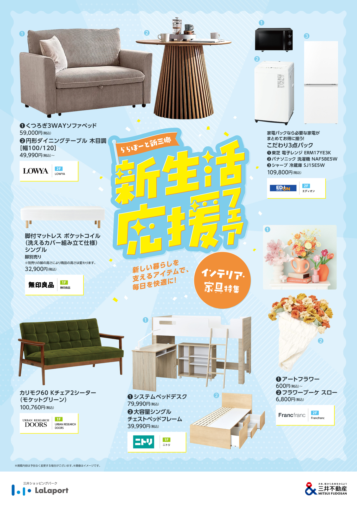 ららぽーと新三郷では、春の新生活にぴったりなインテリア・家具を豊富に取り揃えております。