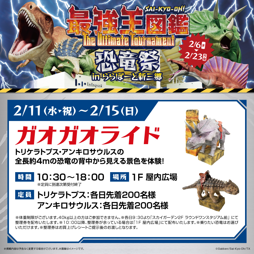 - 【オリジナルシールがもらえる!】最強王図鑑 ~The Ultimate Tournament~ 恐竜祭 ㏌ららぽーと新三郷