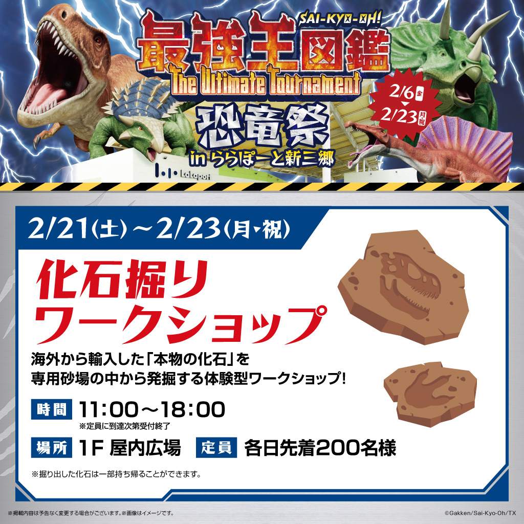- 【化石掘りワークショップ】最強王図鑑 ~The Ultimate Tournament~ 恐竜祭 ㏌ららぽーと新三郷