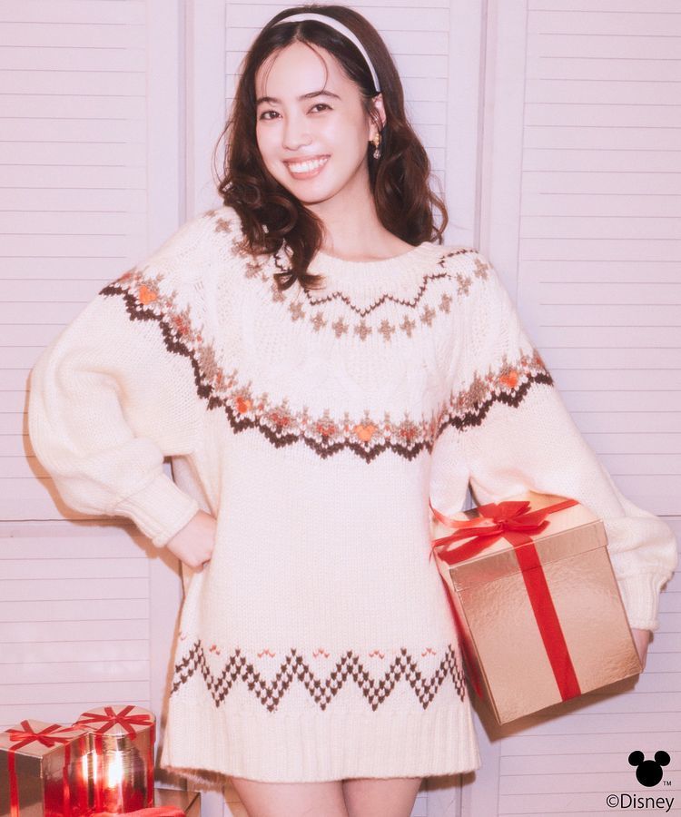 シーズンムード高まるノルディック柄が目を惹くニットプルオーバー。