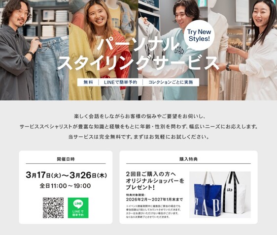 1969年にアメリカ・サンフランシスコで創業以来、世界的なカジュアルブランドとして常にクリーンなアメリカンカジュアルを提案し続けるGap。