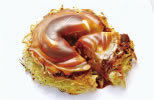 つなぎを少なくたっぷりキャベツに鰹節をかけて風月流に焼き上げたお好み焼きは、中はキャベツの自然の甘みでふんわり、外は少しこげめをつけてサクッ!とした食感に仕上ります。