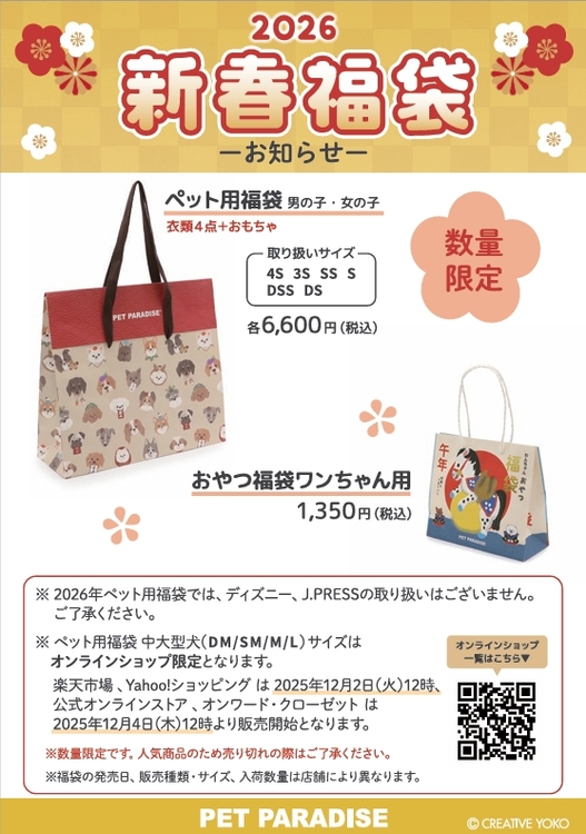 毎年大人気の福袋12/27(土)~販売! - ペットパラダイス