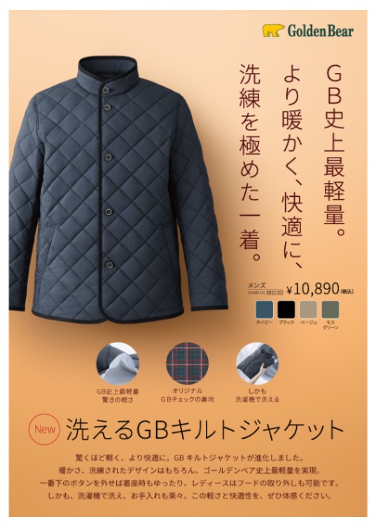 今年のGBキルトジャケットはゴールデンベア史上最軽量!