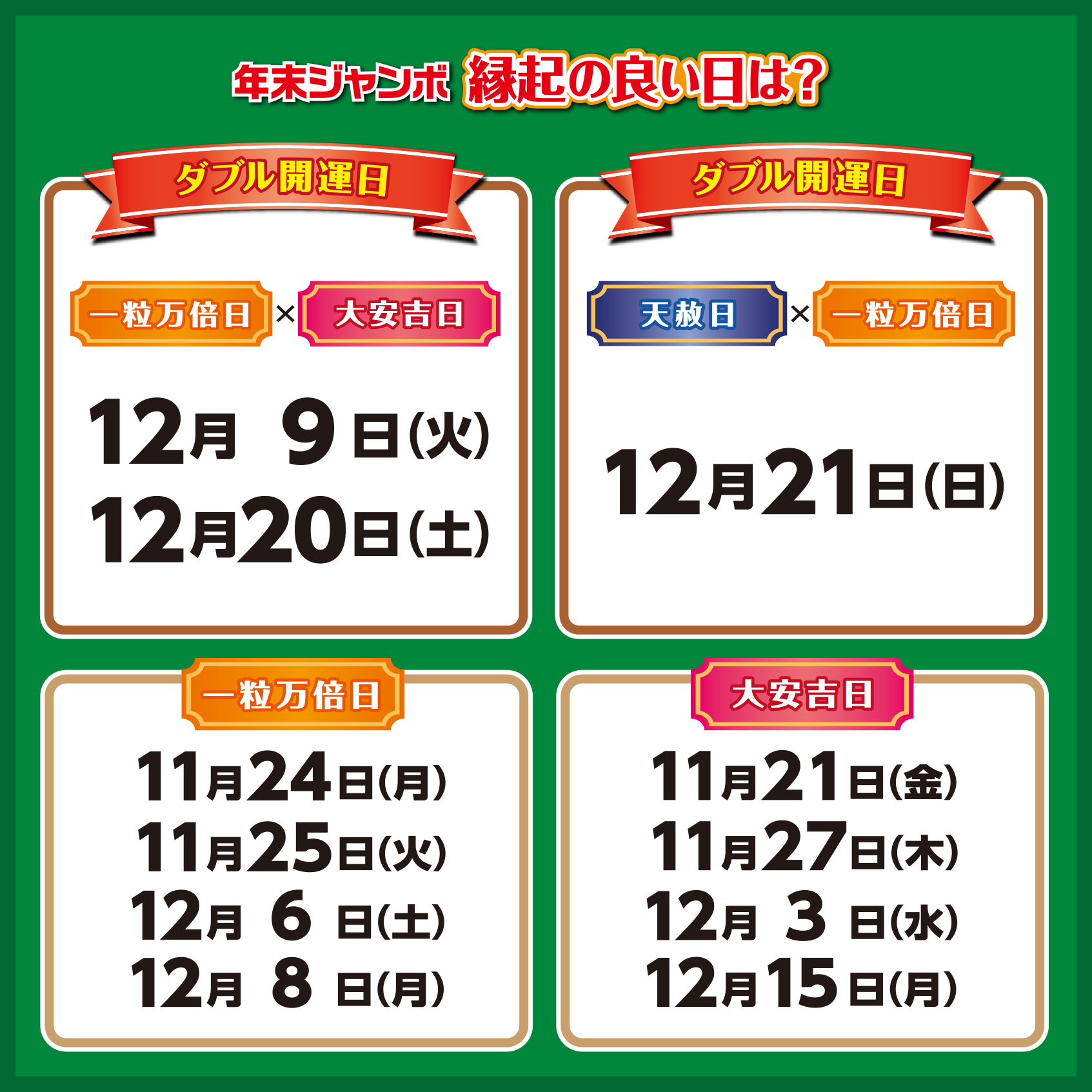 - 「年末ジャンボ宝くじ」発売期間中の主な「開運日」!