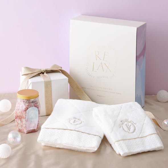 タオル2種とハーブ入りバスソルトのセットです華やかなローズペタル入りのハーブソルトと合わせて使えば、自宅にいながらホテルのようなくつろぎのひとときを叶えてくれます