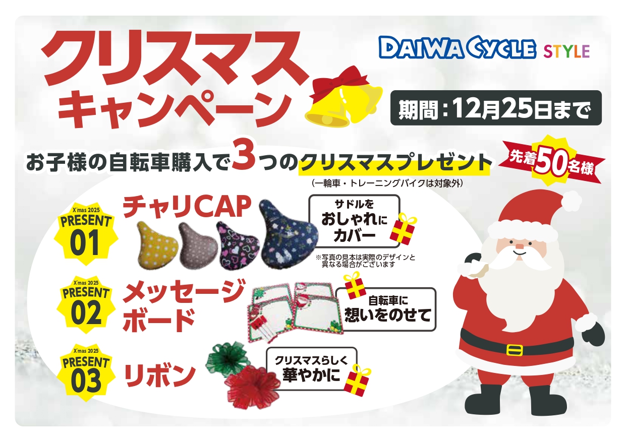 お子様用の自転車購入で、ダイワサイクルSTYLEから3つのプレゼントがあります。