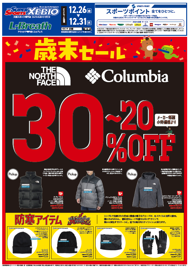 30%~20%OFF そのほか防寒ジャケット、ダウン