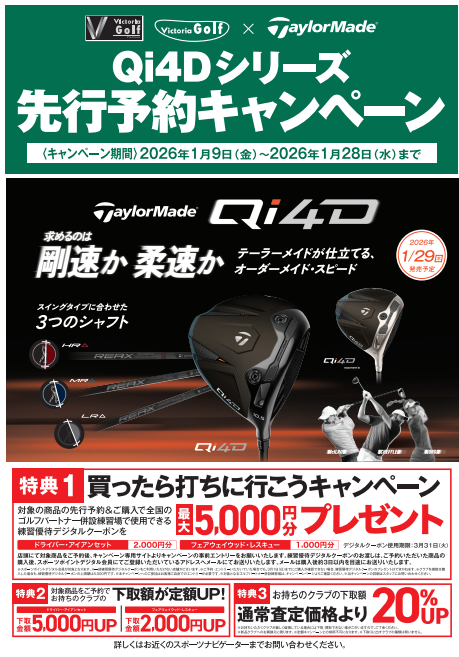 テーラーメイド Qi4D 先行予約キャンペーン!!