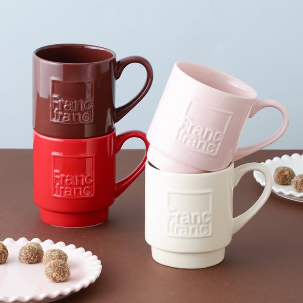 シンプルながらも、ぷっくり立体的な質感がワンポイントになっているFrancfrancのロゴがスタイリッシュなマグカップです。