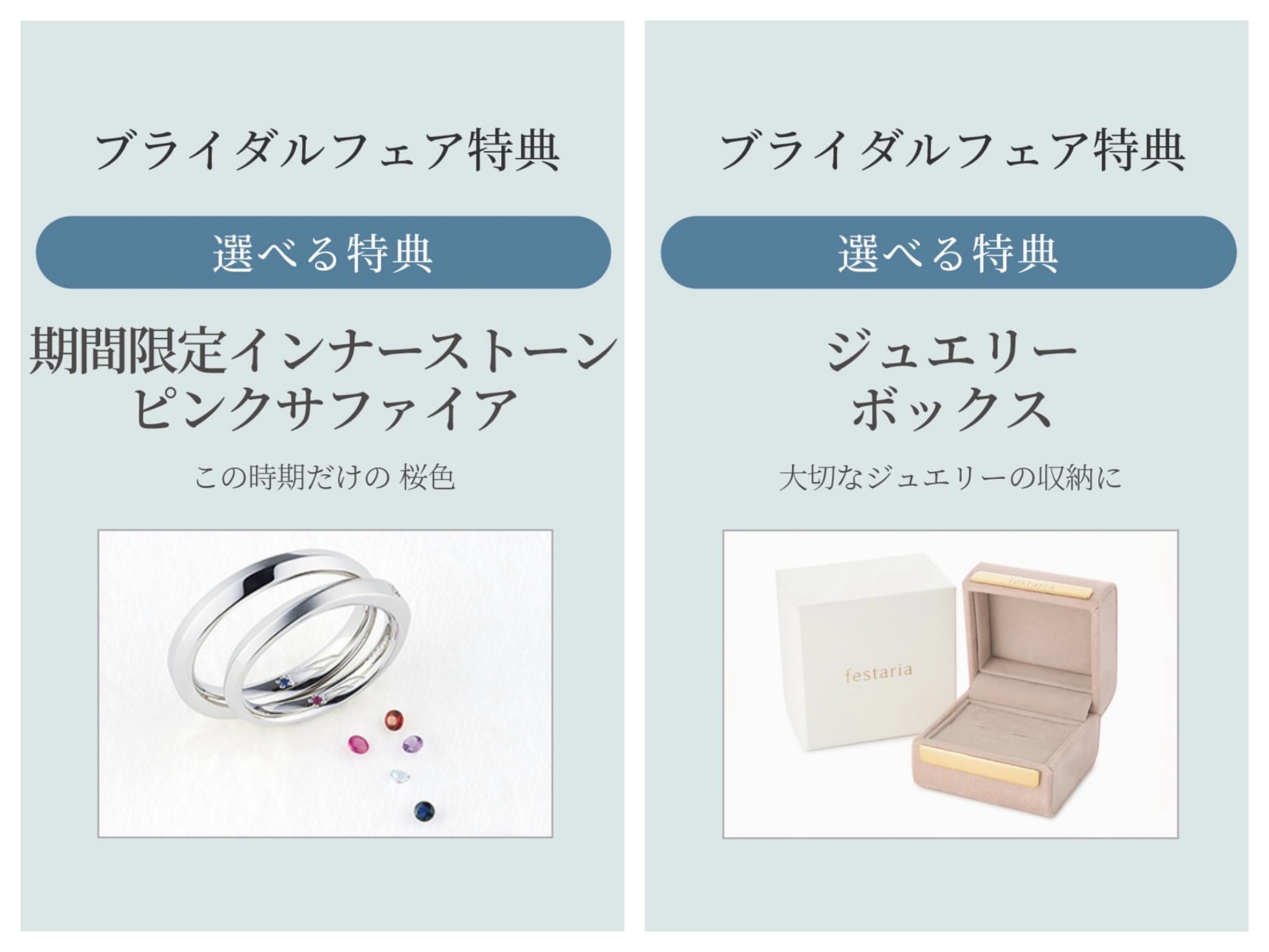 期間中、ブライダルジュエリーをご成約いただいた方には選べる3つの特典をご用意しております。