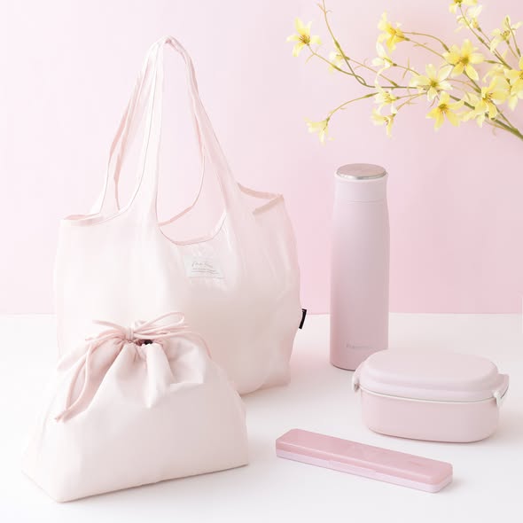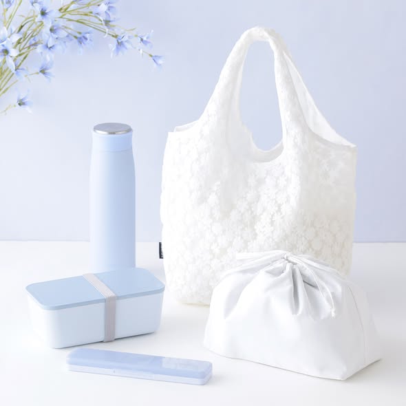 ランチバッグに見えないおしゃれなデザインのバッグと、保冷保温ができるアルミ巾着のセットです。
