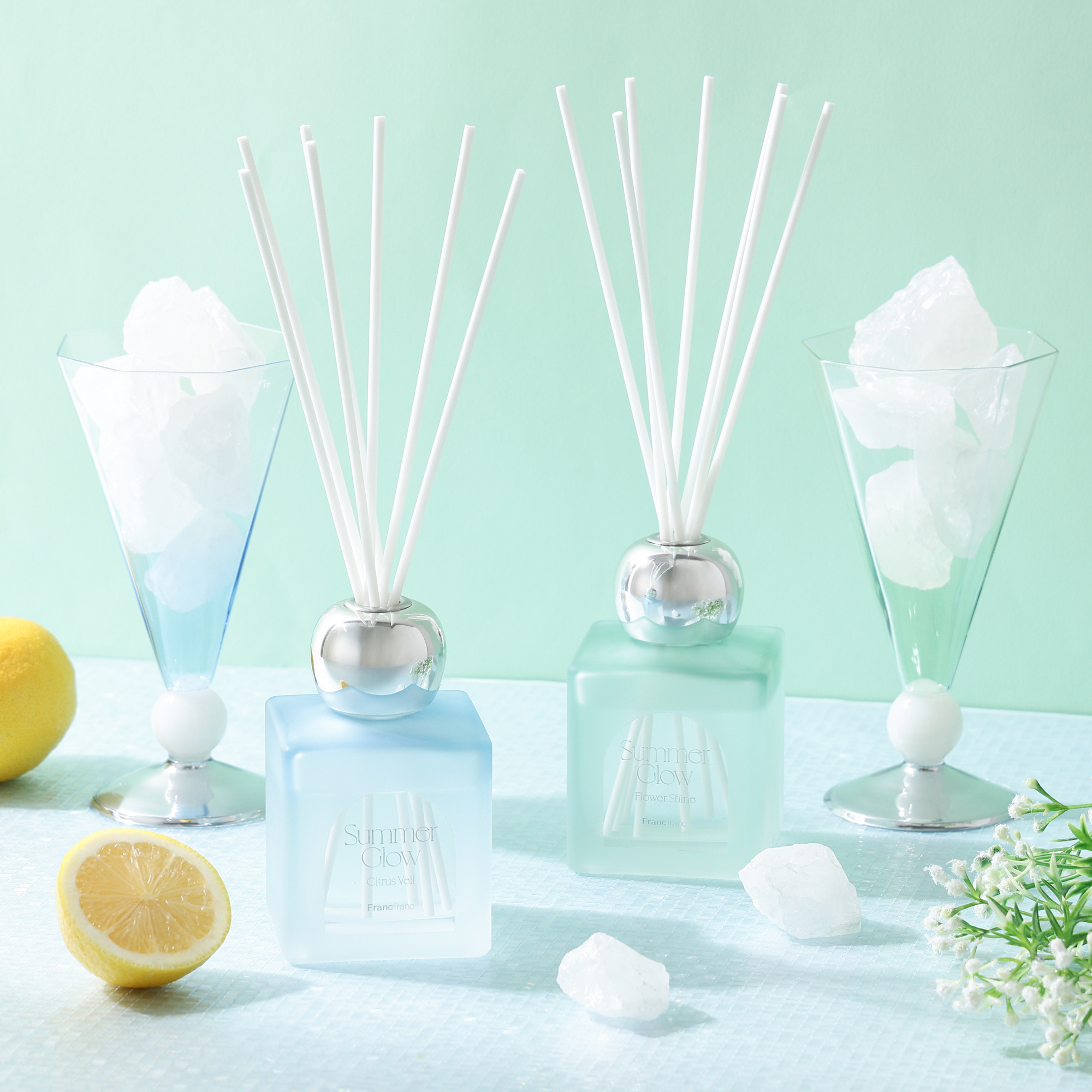 氷をイメージした透明感のあるデザインのフレグランスストーンとディフューザーは、見た目からも涼しさを感じられるので、暑い夏を爽やかに乗り切るのにぴったりなインテリアアイテムです。