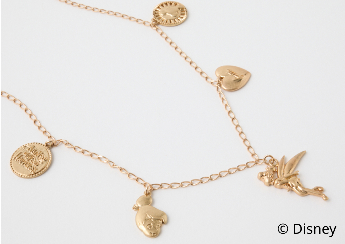 ティンカーベルの世界観を映したヴィンテージライクなネックレス。繊細なゴールドチェーンに丁寧に仕上げたチャームが輝きます。シンプルなトップスに合わせるだけで華やかな印象に。ホリデーシーズンにもぴったりの一点です。