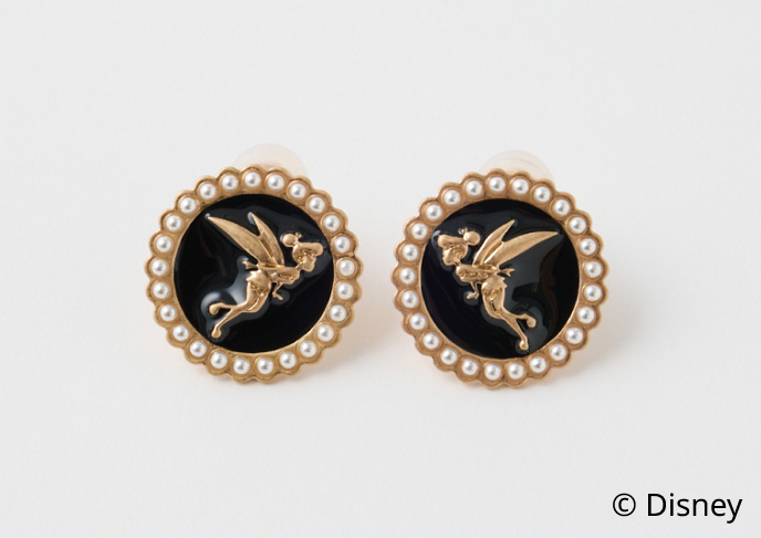 ティンカーベルをモチーフにしたカメオ風イヤリング。精巧な装飾と程よい重厚感がクラシカルな上品さを演出します。アップヘアやタイトなスタイルのアクセントに最適で、普段使いにも特別な日にも映えるタイムレスなデザインです。