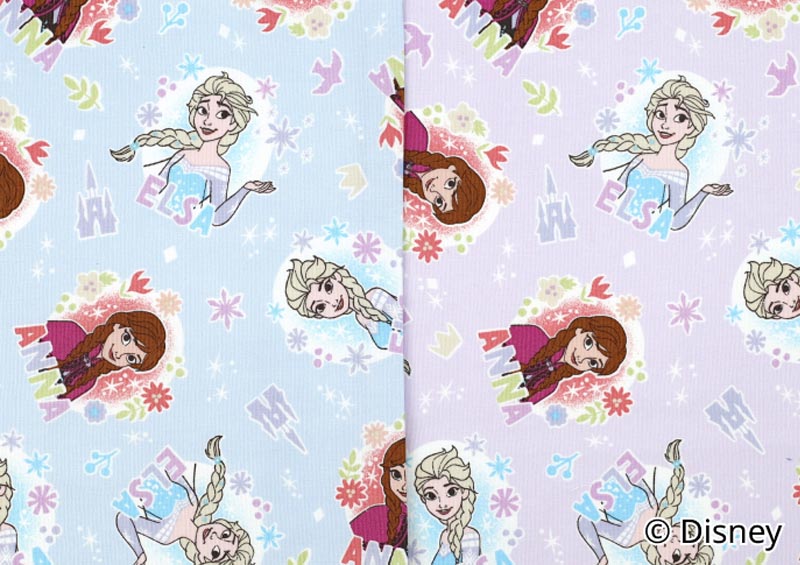 ユザワヤオリジナル柄!『アナと雪の女王』のプリント生地です。可愛いサックスとパープルの2色展開。100%のオックス生地なのでバッグ等小物作りにおすすめ。