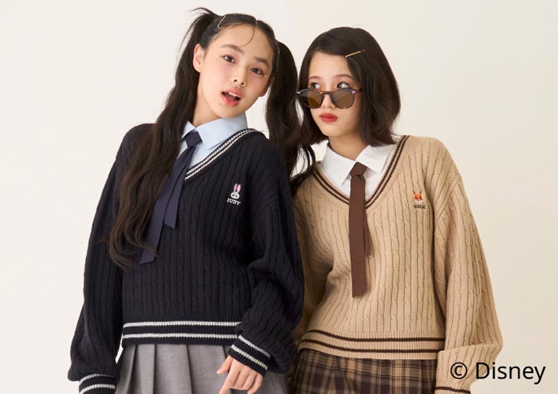 ジュディとニックをイメージしたネクタイ付きレイヤードニットが登場!一枚でコーデが決まるレイヤードデザインが嬉しい一枚です。