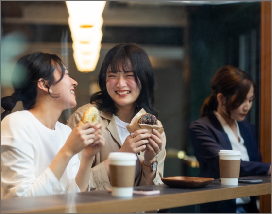 - 接客の基本から学べる研修やサポート体制が充実。アルバイトが初めてでも安心してスタートでき、就活にも役立つスキルが身につきます。