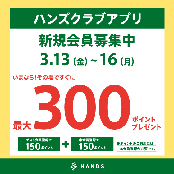 ハンズクラブアプリ新規入会キャンペーン開催中!