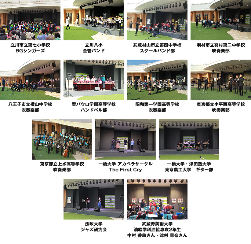 スペシャルゲストに3月16日(土)「髙橋楓」さん、17日(日)に「lol-エルオーエル-」さんを迎えて近隣の学生による演奏やパフォーマンス、昨年11月にも実施いただいた武蔵野美術大学2年生 中村さん、津村さんによるライブペイントを行いました。天気にも恵まれ、多くのお客様や出演者のご家族が来場され盛り上がりました!
