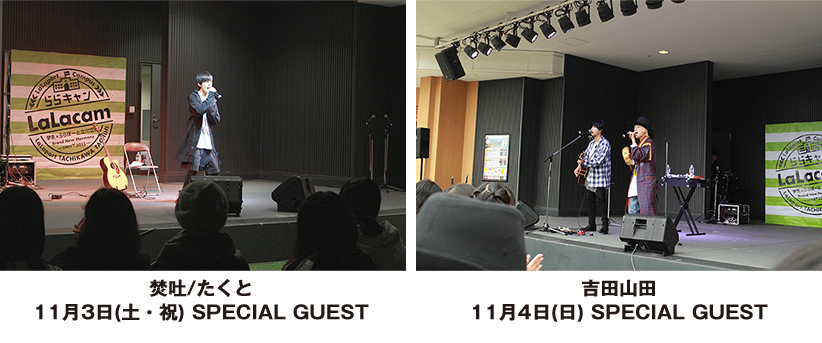 3周年を記念し、「みんなで作ろう!」をテーマに立川市含め近隣の学校、大学の学生による演奏やパフォーマンス、武蔵野美術大学2年生 中村さん、津村さんによるライブペイントを行いました。1日目は、スペシャルゲストとして「焚吐/たくと」さん、2日目は、「吉田山田」さんのミニライブも行い会場は賑わいました!