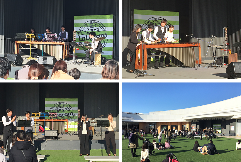 雲一つない青空のもと、イベント広場で国立音楽大学打楽器研究室によるライブが開催されました。