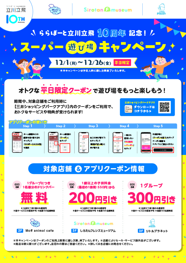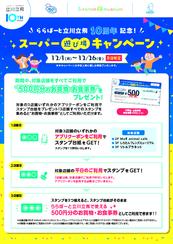 - ららぽーと立川立飛10周年記念! スーパー遊び場キャンペーン