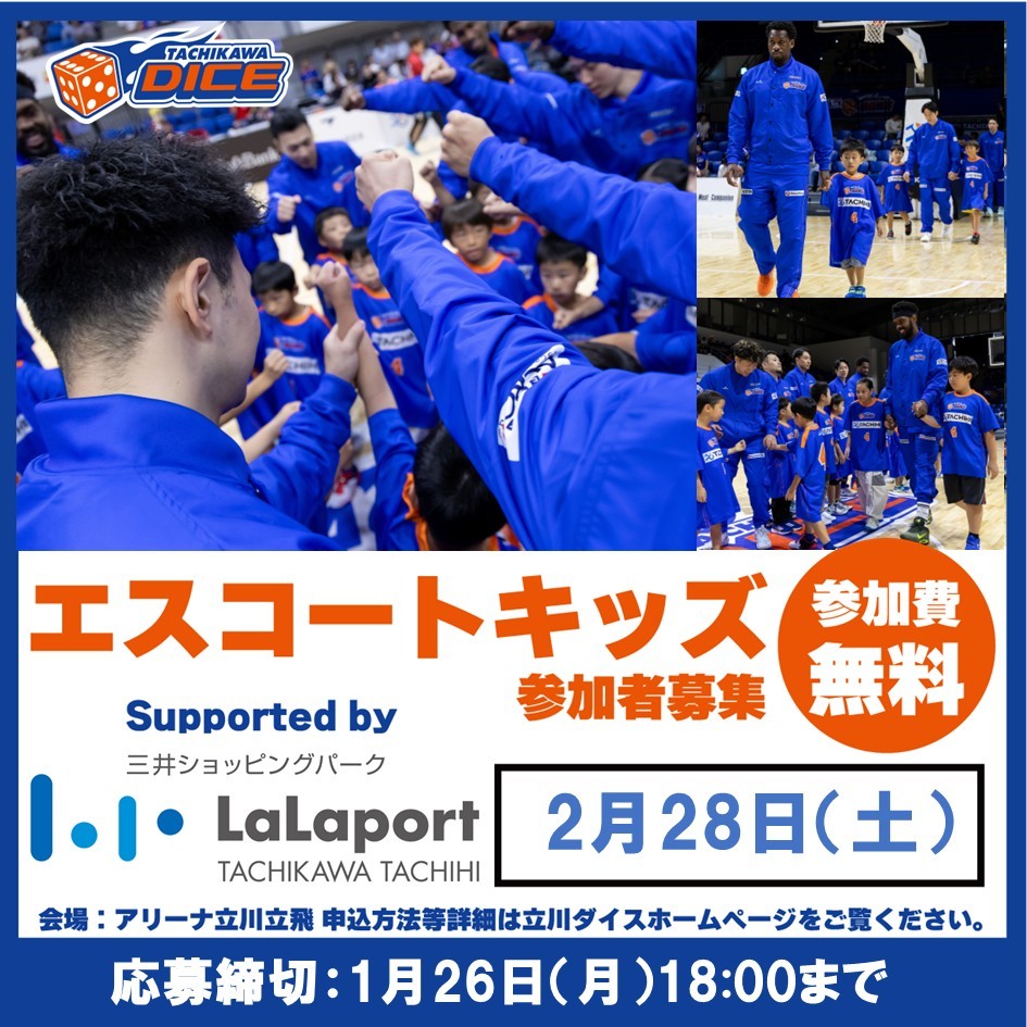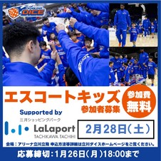 2/28(土)にアリーナ立川立飛で開催される「立川ダイスvs ヴィアティン三重」戦にて、選手と一緒に入場するエスコートキッズを募集いたします。