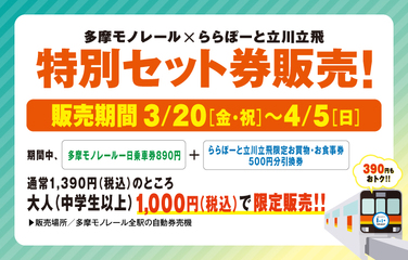 多摩モノレール×ららぽーと立川立飛 特別セット券販売!