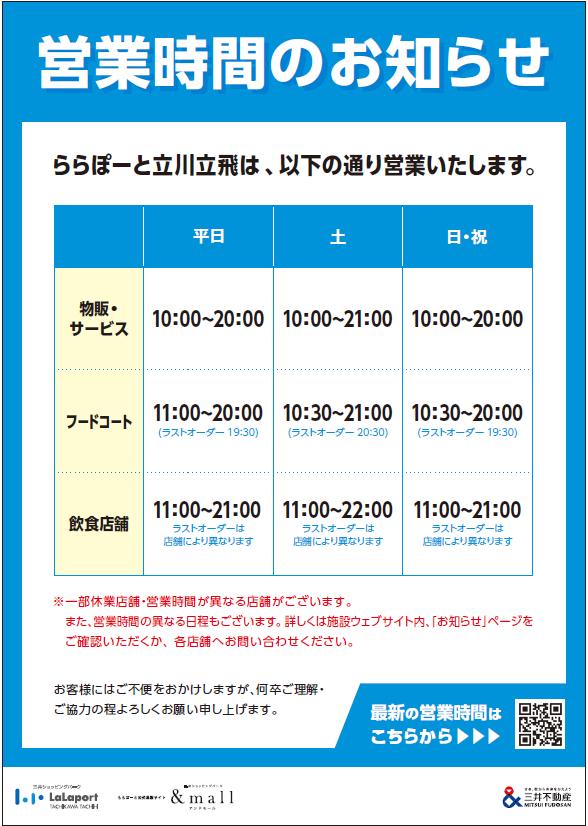 ※店舗により営業時間が異なる場合がございます。詳しくは各店舗までご確認ください。