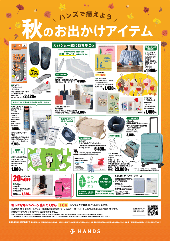 3階ハンズでは、秋のお出かけにおすすめのアイテムを多数ご用意しております。