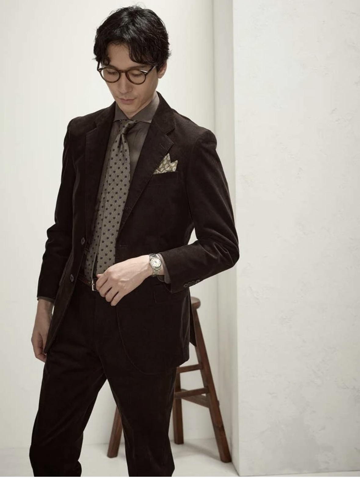 綿×ポリエステルのコーデュロイ生地を使用したセットアップです。