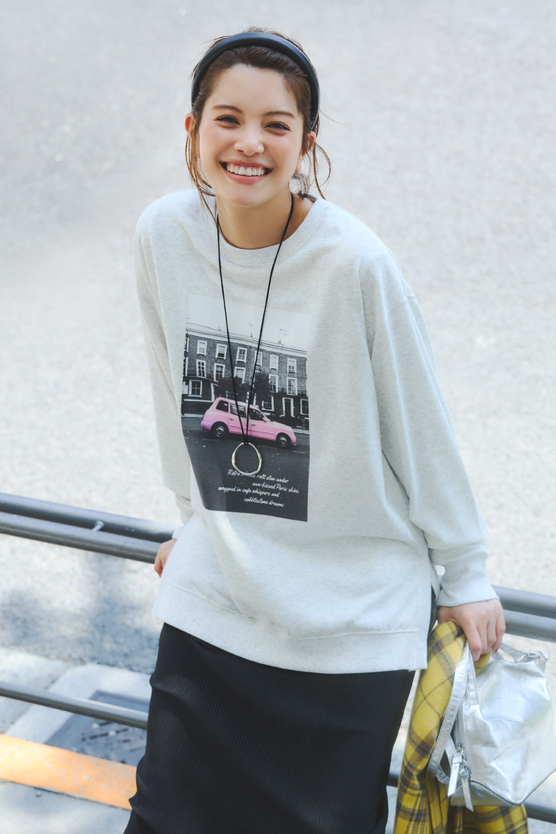 洗濯後、乾きやすい裏毛素材を使用したプリントスウェット。