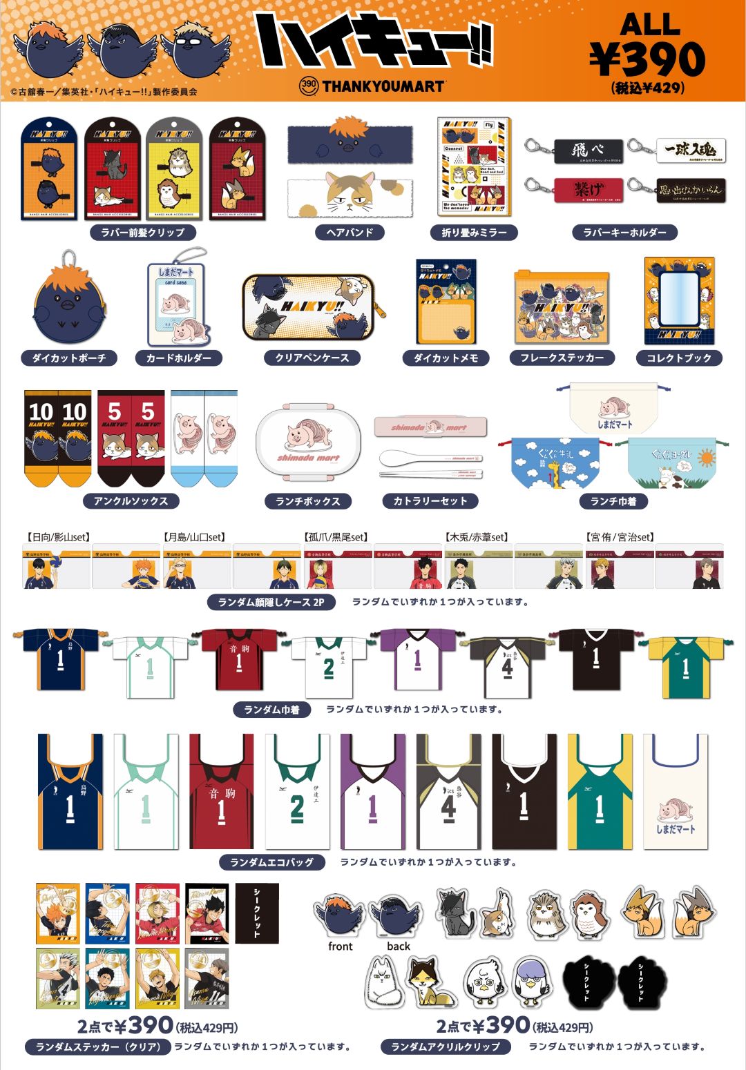 アニメ「ハイキュー!!」より 全品390円(税込429円)の限定アイテムが登場!