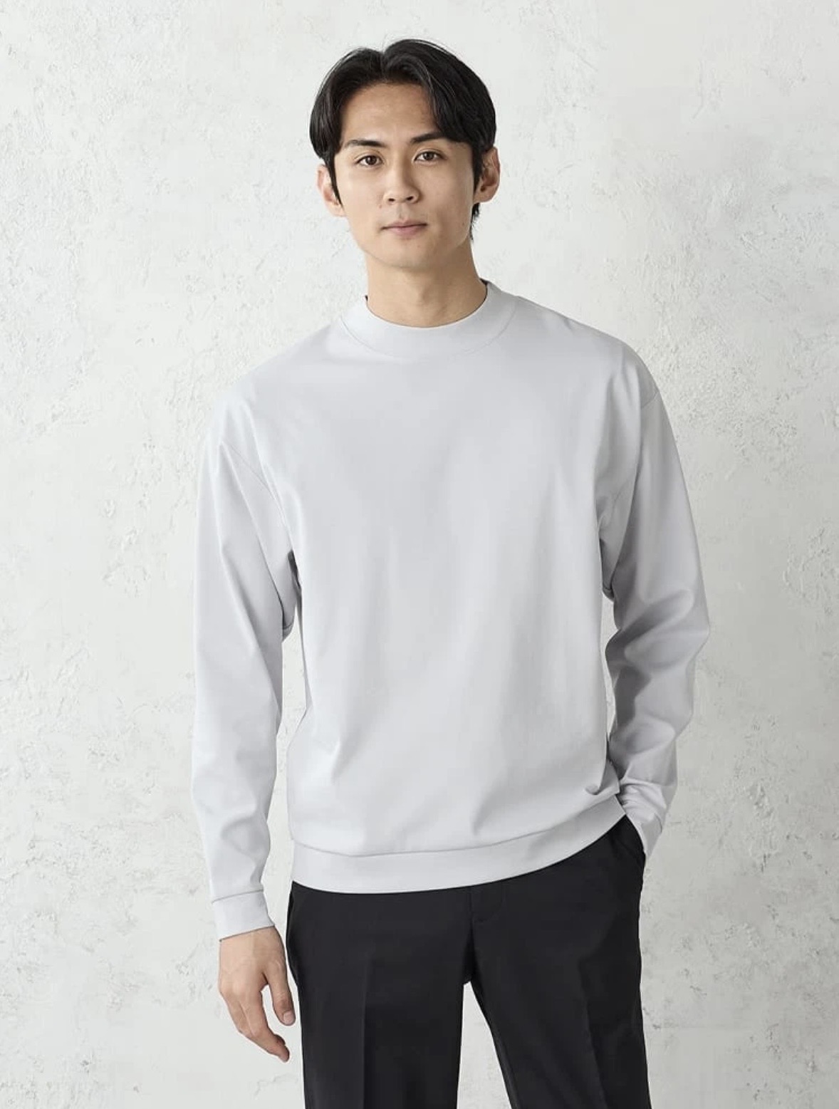 ストレッチ綿混モックネック長袖ロンT