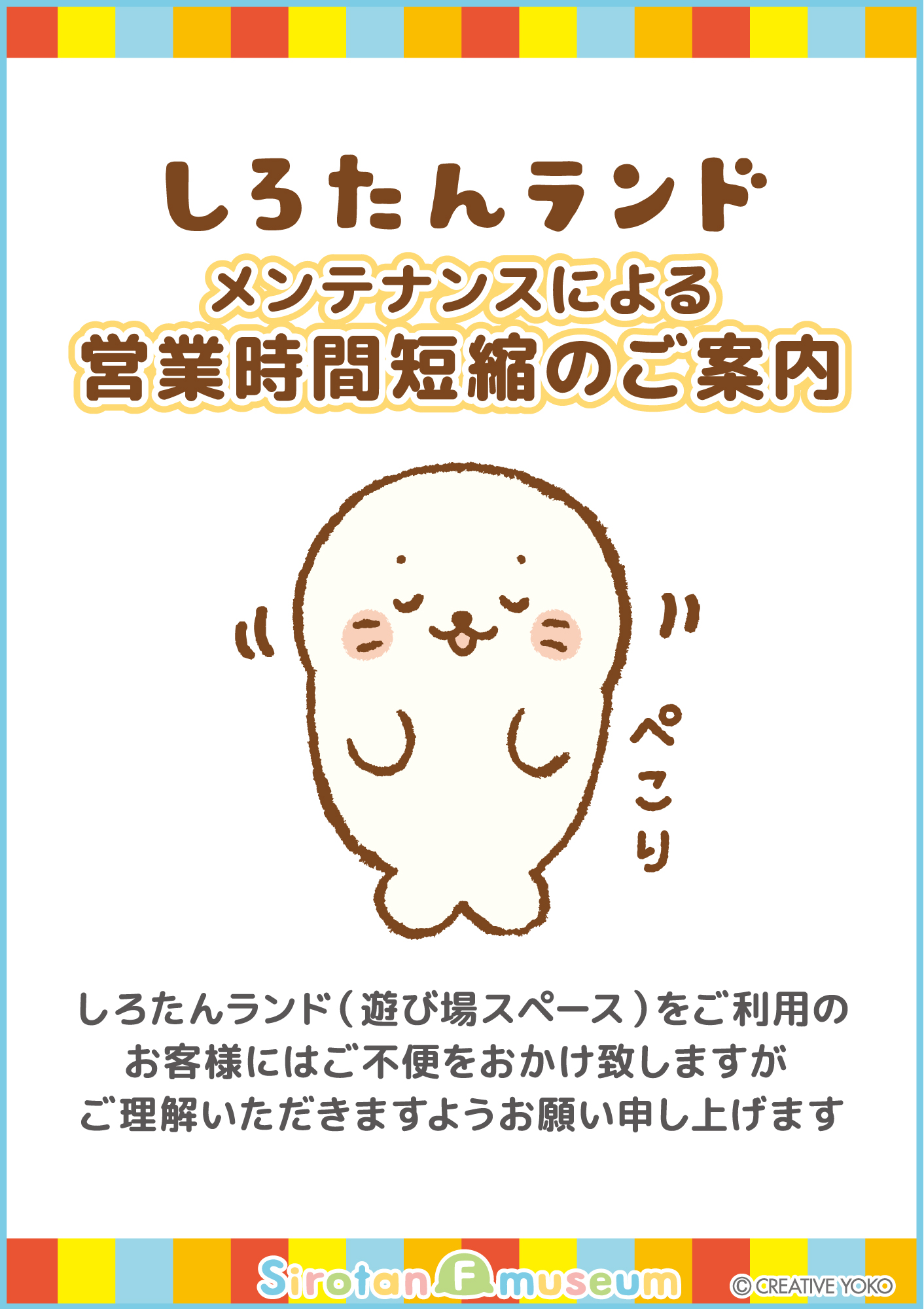 しろたんランド(遊び場)よりメンテナンス実施のお知らせです。
