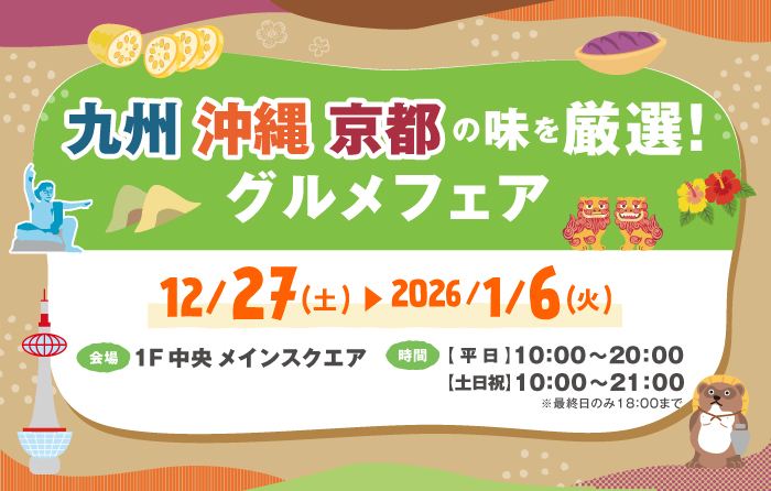 - 九州・沖縄・京都の味を厳選!グルメフェア【12/27(土)~1/6(火)】