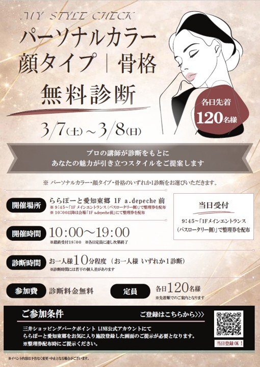 パーソナルカラー・顔タイプ・骨格 無料診断【3/7(土)・3/8(日)】