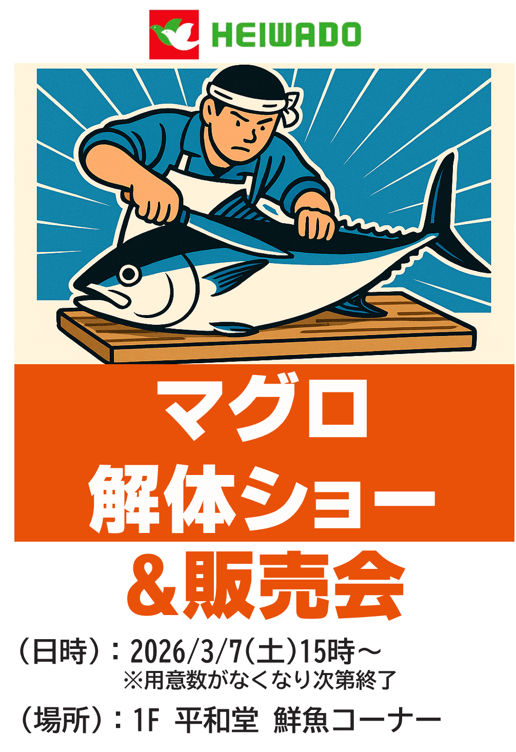 - 【平和堂】マグロ解体ショー&販売会【3/7(土)】